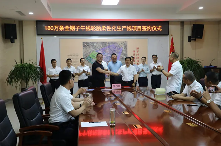 6月26日,原平经济技术开发区党工委书记、管委会主任、副市长贾文柱与山西汉勃橡胶有限公司董事长岳东旭签订了总投资50亿元,年产180万条全钢子午线轮胎柔性化生产线项目战略合作协议。该项目的签约,有效填补了开发区轮胎产业空白,建成投产后将成为忻州地区最大的轮胎研发生产基地。开发区管委会中层以上领导干部参加签约仪式。