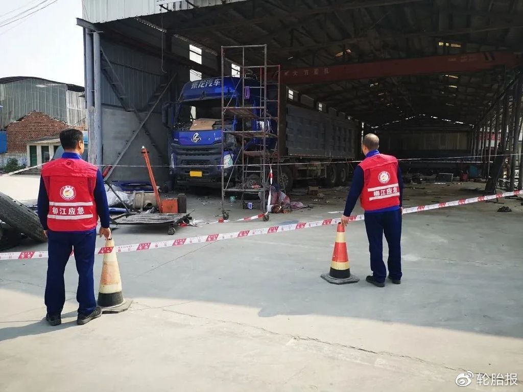 接到求助后,柳江区应急局第一时间派员到现场核查。经查,确认停放在该公司维修车间的一辆重型自卸货车的第三、四轴左后三个轮胎和第四轴左外轮胎均已严重变形开裂,且持续增大,随时可能发生轮胎爆炸。且该公司附近还有一所中学,轮胎爆炸隐患问题可能危及周边群众生命财产安全。